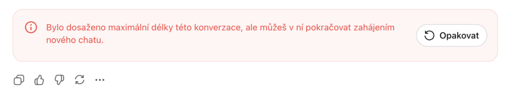 A jak už možná tušíš – jakmile je konverzace delší, starší instrukce začnou postupně vypadávat z kontextu nebo se naplní jeho paměť, takže není možné v ní dál pokračovat. ❌